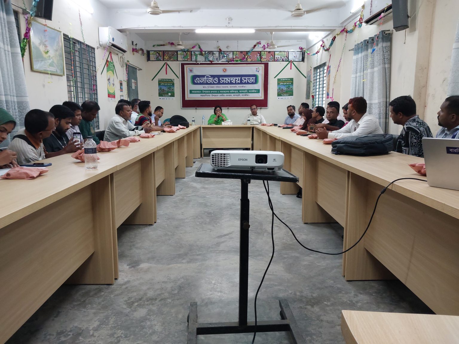উপজেলা নির্বাহী অফিসার কৃষ্ণা রায়ের সভাপতিত্বে সভায় উপজেলা সমাজ সেবা অফিসার মোঃ রফিকুল ইসলাম, বন কর্মকর্তা, আশাশুনি উপজেলায় কর্মরত এনজিও প্রতিনিধিবৃন্দ উপস্থিত ছিলেন। পাওয়ার পয়েন্ট প্রেজেন্টেশন করেন ন্যাজারিন মিশনের পক্ষে প্রকল্প সমন্বয়কারী ফ্রান্সিস মিঠুন সরকার ও রূপান্তর এর পক্ষে প্রোজেক্ট ম্যানেজার এমরান হাসান। উপজেলা এনজিও সমন্বয় কমিটির সমন্বয়কারী আসাদুল ইসলাম আসাদের সঞ্চালনায় ও আইডিয়ালের সিবিআর অফিসার সুব্রত বাছাড় সার্বিক সহযোগিতায় বিভিন্ন এনজিও প্রতিনিধি বক্তব্য রাখেন। সভায় এনজিও ফ্রেন্ডশীপ প্রজেক্ট ম্যানেজার জসিম উদ্দীন ও ইএসডিও প্রতিনিধি স্ব স্ব এনজিওর বাস্তবায়িত ও বাস্তবায়নাধীন কর্মকান্ড সম্পর্কে বিস্তারিত তথ্য মাল্টিমিডিয়া প্রজেক্টরের মাধ্যমে উপস্থাপন করেন। সিআইডিআরআর প্রকল্পের কার্যক্রম উপস্থাপন করেন প্রজেক্ট ম্যানেজার জসিম উদ্দিন। তিনি প্রকল্পের সকল কার্যক্রম মাল্টি-মিডিয়ার মাধ্যমে বর্ণনা করেন। প্রেজেন্টেশন শেষে সমাপনী বক্তব্যে ইউএনও কৃষ্ণা রায় বলেন, সিআইডিআরআর কোস্টাল প্রকল্পের নির্মাণাধিন পানির প্লান্ট ও ঘূর্ণিঝড় সহনীয় বাড়ি শ্রীউলাতে তিনি পরিদর্শন ও উদ্ধোধন করবেন। সভায় এনজিও বারসিক এর কো-অর্ডিনেটর আসাদুল ইসলাম এনজিও সমন্বয়ক নির্বাচিত হয়েছেন।