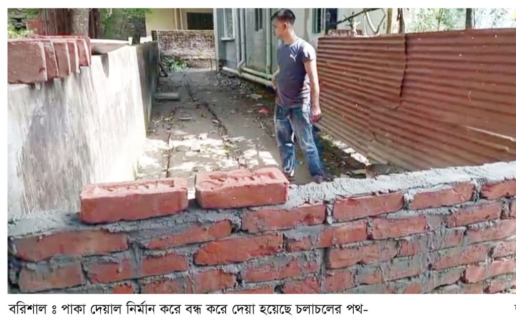 স্টাফ রিপোর্টার, বরিশাল।। পাকা দেয়াল নির্মান করে বন্ধ করে দেওয়া হয়েছে ২০টি পরিবারের চলাচলের একমাত্র রাস্তা। এতে করে ওইসব পরিবারের সদস্যরা এখন অবরুদ্ধ হয়ে পরেছে। ঘটনাটি ঘটেছে বৃহস্পতিবার (১১ সেপ্টেম্বর) সকালে বরিশালের গৌরনদী উপজেলার তিকাসার গ্রামে।