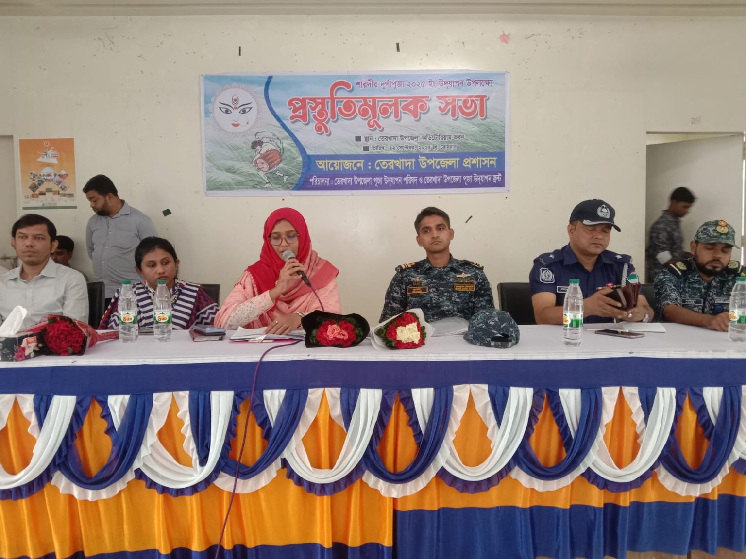 তেরখাদা প্রতিনিধিঃ তেরখাদা উপজেলায় শারদীয় দুর্গাপূজা উদযাপন উপলক্ষ্যে সোমবার (২২ সেপ্টেম্বর) সকাল সাড়ে ১১ টার দিকে উপজেলা পরিষদের হলরুমে এক প্রস্তুতি মূলক সভা অনুষ্ঠিত হয়।