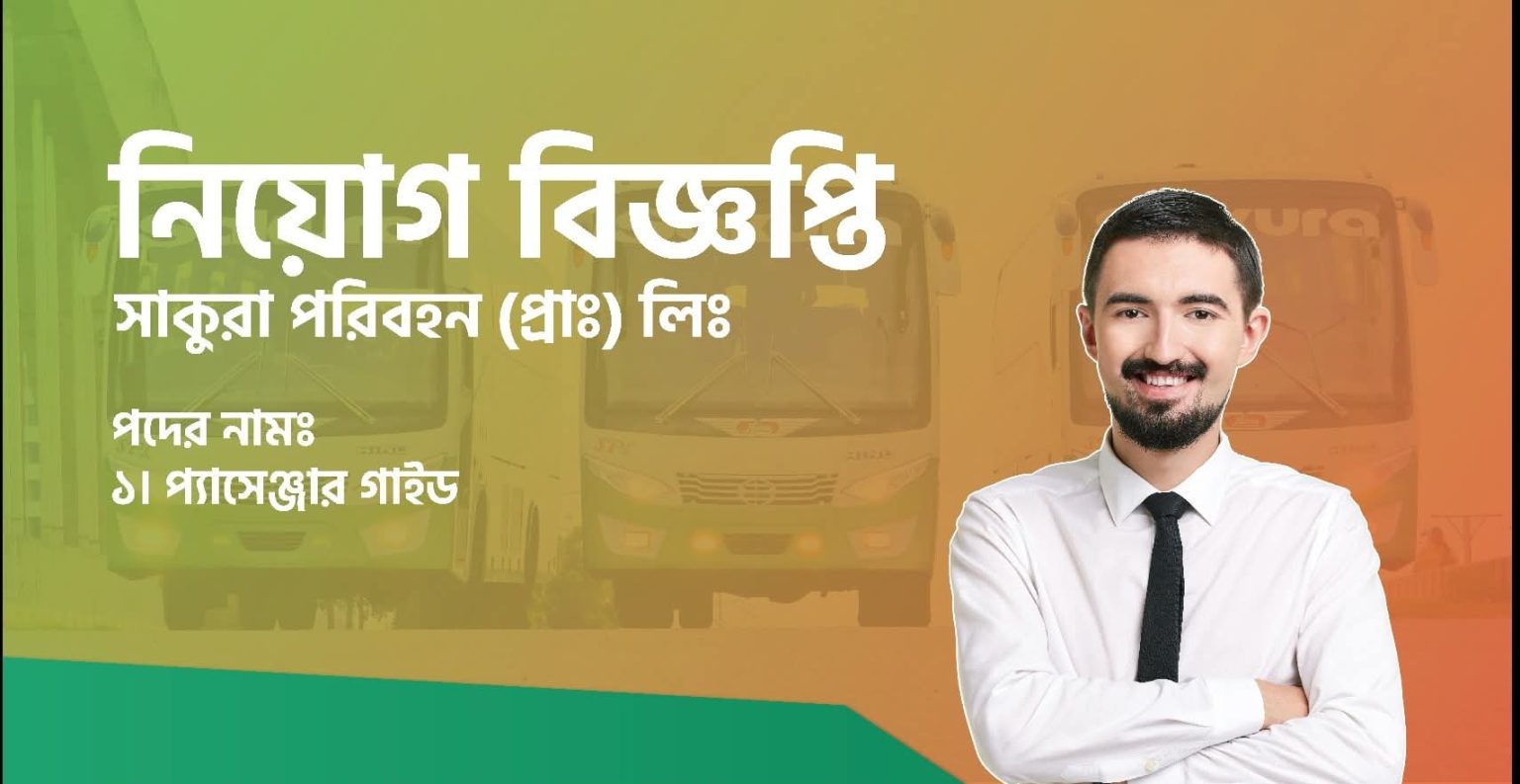 বরিশাল দক্ষিণ বঙ্গের দ্রুতগামী যাত্রীবাহি গাড়ি সাকুরা পরিবহন (প্রাঃ) লিঃ ননএসি সেকশনে জরুরি ভিত্তিতে কিছু সংখ্যক প্যাসেঞ্জার গাইড (সুপারভাইজার) নিয়োগ দিচ্ছে, আগ্রহীগনদের মেইলের মাধ্যমে CV পাঠাতে হবে।
