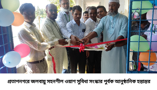 জি এম মুজিবুর রহমান, আশাশুনি (সাতক্ষীরা)।। আশাশুনি উপজেলার প্রতাপনগর ইউনিয়নে বিদ্যালয় পর্যায়ে জলবায়ু সহনশীল ওয়াশ সুবিধার সংস্কার কাজ সম্পন্ন পুর্বক আনুষ্ঠানিক হস্তান্তর করা হয়েছে। বৃহস্পতিবার (২৫ সেপ্টেম্বর) প্রতাপনগর ইউনাইটেড একাডেমী উচ্চ বিদ্যালয়ের হলরুমে অনাড়ম্বর অনুষ্ঠানের আয়োজন করা হহয়।