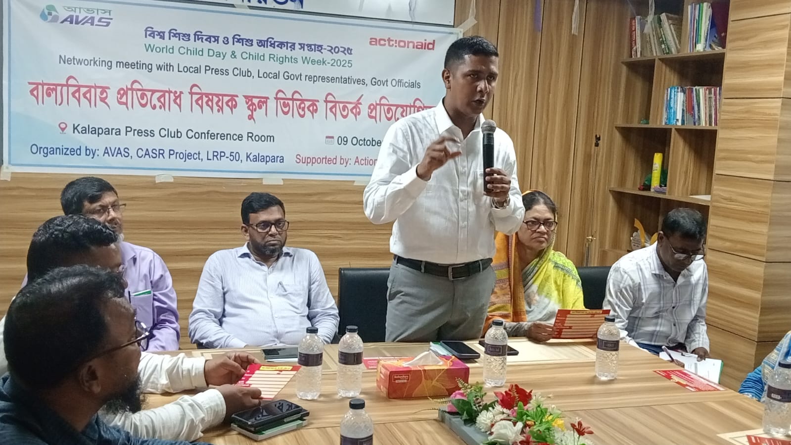 অশোক মুখার্জি, কলাপাড়া, পটুয়াখালী।। পটুয়াখালীর কলাপাড়ায় ‘বাল্যবিবাহ প্রতিরোধ বিষয়ক স্কুল ভিত্তিক বিতর্ক প্রতিযোগিতা’ অনুষ্ঠিত হয়েছে। বৃহস্পতিবার দুপুরে কলাপাড়া প্রেসক্লাবের ইঞ্জিনিয়র তৌহীদুর রহমান মিলনায়তনে বেসরকারি উন্নয়ন সংস্থা আভাস আয়োজিত এই অনুষ্ঠান আভাস নির্বাহী পরিচালক রহিমা সুলতানা কাজল সভাপতিত্ব করেন । প্রধান অতিথি হিসেবে অনুষ্ঠানের উদ্বোধন করেন কলাপাড়া উপজেলা নির্বাহী অফিসার কাউছার হামিদ। বিশেষ অতিথির বক্তব্য রাখেন পটুয়াখালী জেলা ত্রাণ ও দূর্যোগ কর্মকর্তা মো. দেলোয়ার হোসেন, ঘুর্ণিঝড় প্রস্তুতি কর্মসূচি ( সিপিপি’র) সহকারী পরিচালক আসাদুজ্জামান খান, প্রকল্প বাস্তবায়ন কর্মকর্তা মোকসেদুল আলম, মাধ্যমিক শিক্ষা কর্মকর্তা মনিরুজ্জামান খান, মহিলা বিষয়ক কর্মকর্তা তাছলিমা আক্তার, সমবায় কর্মকর্তা আব্বাস উদ্দিন, সহকারী শিক্ষা কর্মকর্তা মিজানুর রহমান প্রমুখ। বিশ্ব শিশু দিবস শিশু অধিকার সপ্তাহ ২০২৫ উপলক্ষ্যে ‘ পরিবারের অসচেতনতাই বাল্যবিবাহের প্রধান কারণ’ বিষয়ের ওপর কলাপাড়ার এম ইউ মাধ্যমিক ও লালুয়া জনতা মাধ্যমিক বিদ্যালয়ের শিক্ষার্থীরা বিতর্ক প্রতিযোগিতায় অংশ নেয়। অনুষ্ঠানের মডারেটর হিসেবে ছিলেন সাংস্কৃতিক সংগঠক মোস্তফা জামান সুজন। বিতর্ক অনুষ্ঠানে অংশ নেওয়া দলকে ক্রেস্ট বিতরণ করা হয়। অনুষ্ঠানে প্রধান অতিথির বক্তব্যে ইউএনও কাউছার হামিদ বলেন, ‘ বাল্যবিয়ে বন্ধে উপজেলা প্রশাসন সচেষ্ট রয়েছে। কেউ বাল্যবিয়ের অনুষ্ঠানে দাওয়াতে গেলেও জরিমানার বিধান কার্যকর করা হবে।