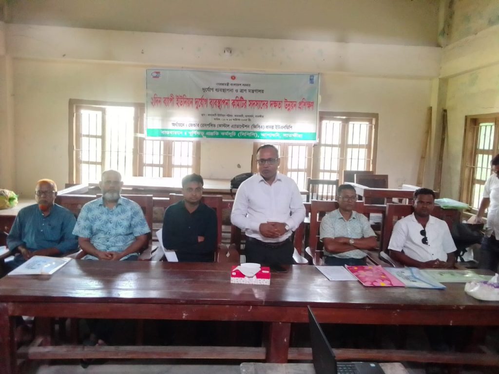 আহাদুল্লাহ সানা, সাতক্ষীরা।।সাতক্ষীরা জেলার আশাশুনী উপজেলার কাদাকাটি ইউনিয়ন পরিষদের সম্মেলন কক্ষে গতকাল জেন্ডার রেসপন্সিভ কোস্টাল এ্যাডাপ্টেশনএনডিপি ও ঘূর্ণিঝড় কর্মসূচি সিপিপি দুদিন ব্যাপী স্বেচ্ছাসেবক ও দুর্যোগ ব্যবস্থাপনা কমিটির দক্ষতা উন্নয়ন প্রশিক্ষণ উদ্বোধন করা হয়। উদ্বোধনী অনুষ্ঠানের প্রধান অতিথি হিসেবে উপস্থিত ছিলেন উপজেলা সমাজসেবা অফিসারও ইউনিয়ন পরিষদের দায়িত্বপ্রাপ্ত প্রশাসক মোহাম্মদ রফিকুল ইসলাম। বিশেষ অতিথি হিসেবে উপস্থিত ছিলেন মুন্সি নূর মোহাম্মদ সহকারী পরিচালক সিপিপি আশাশুনি, মেছপাউর রশিদ উপ পরিচালক সিপিপি বরগুনা। এছাড়া অন্যান্যদের মধ্যে উপস্থিত ছিলেন সাংবাদিক মোঃ আহাদুল্লাহ সানা, আব্দুল জলিল টিম লেডার সিপিপি আশাশুনি,মোঃরফিজ্জামান মুন্না সিপিপি শ্যামনগর। উক্ত প্রশিক্ষণে ২৫ জনের মত পুরুষ ও মহিলা সিপিপি সদস্য অংশগ্রহণ করেন।
