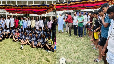 আহাদুল্লাহ সানা, সাতক্ষীরা।। নতুন বাংলাদেশ গড়ার লক্ষ্যে তারুণ্যের উৎসব উপলক্ষে জাতীয় চ্যাম্পিয়নশীপ-২০২৫ ফুটবল টুর্নামেন্টের আনুষ্ঠানিক উদ্বোধন করা হয়েছে। রবিবার (১২ অক্টোবর) বিকালে যুব ও ক্রীড়া মন্ত্রণালয়ের পৃষ্ঠপোষকতায় ও বাংলাদেশ ফুটবল ফেডারেশনের আয়োজনে এবং সাতক্ষীরা জেলা প্রশাসন ও জেলা ক্রীড়া সংস্থার সার্বিক ব্যবস্থাপনায় সাতক্ষীরা জেলা স্টেডিয়ামে অতিরিক্ত জেলা প্রশাসক (সার্বিক) বিষ্ণুপদ পালের সভাপতিত্বে প্রধান অতিথি হিসেবে জাতীয় চ্যাম্পিয়নশীপ-২০২৫ ফুটবল টুর্নামেন্টের দ্বিতীয় পর্বের দ্বিতীয় খেলার প্রধান অতিথি হিসেবে পুরস্কার বিতরণ করেন সাতক্ষীরা জেলা প্রশাসক মোস্তাক আহমেদ।