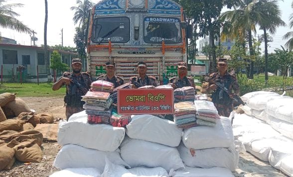 পরবর্তীতে আভিযানিক দল উক্ত জায়গা ও যানবাহন তল¬াশী করে ১২ লাখ টাকার ২০ হাজার কেজি ভারতীয় খৈল, ২ কোটি ৬১ লাখ ৩৪ হাজার ৫০০ টাকার অতি উন্নতমানের ২ হাজার ৪৮৯ পিস শাড়ী, ১ কোটি ৮৯ লাখ টাকার ২ হাজার ১০০ পিস উন্নতমানের শাড়ী, ৩২ লাখ ২২ হাজার টাকার ৩৫৮ পিস অতি উন্নমানের থ্রি-পিস, ১২ লাখ টাকার ১৫০ পিস উন্নতমানের থ্রি-পিস, ২ লাখ ৫ হাজার টাকার ২০৫ পিস ব্লাউজ, ৬০ হাজার টাকার ৪০০ বোতল ফেন্সিডিল, ৯০ লাখ টাকার একটি ভারতীয় ট্রাক, ১ কোটি ৪০ লাখ টাকার ২টি বাংলাদেশী ট্রাক আটক করে। যার সর্বমোট মূল্য ৭ কোটি ৩৯ লাখ ২১ হাজার ৫০০ টাকা।