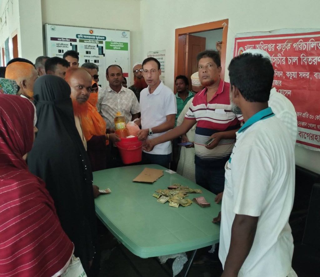 কচুয়া (বাগেরহাট) প্রতিনিধি।।কচুয়ায় টিসিবির পন্য বিতরণ শুরু হয়েছে।২১ অক্টোবর মঙ্গলবার উপজেলার কচুয়া ইউনিয়ন পরিষদের হলরুমে কচুয়া ইউনিয়নের কার্ডধারী প্রতি পরিবারের মাঝে ও বাধাল ইউনিয়নের কার্ডধারী প্রতি পরিবারের মাঝে এ টিসিবি পন্য বিতরণ করা হয়। প্রতি কার্ডধারী পরিবার পাবে ৫ কেজি চাল,২ কেজি মসুর ডাল, ২ কেজি সয়াবিন তৈল ও ১ কেজি চিনি মোট প্যাকেজ ৫৪০/- টাকার বিনিময়ে দেওয়া হয়।এসময় উপস্থিত ছিলেন উপজেলা নির্বাহী কর্মকর্তা মো: আলী হাসান,উপজেলা বিএনপির সভাপতি সরদার জাহিদ,বিএনপির সাধারণ সম্পাদক এস এম তৌহিদুল ইসলাম ও ট্যাগ অফিসার মো: রায়হান হোসেন এবং মেসার্স জাহাঙ্গীর ট্রেডার্স মো: জাহাঙ্গীর হোসেন সহ আরো অনেকে । সকলের উপস্থিতিতে টিসিবির এসব পণ্য বিতরণ করা হয়।উপজেলা নির্বাহী কর্মকর্তা মো: আলী হাসান আমাদের প্রতিনিধিকে জানান যে, উপজেলার প্রতিটি ইউনিয়নে পর্যায়ক্রমে এই টিসিবির পণ্য কার্ডধারী দুঃস্থদের মাঝে বিতরণ করা হবে।