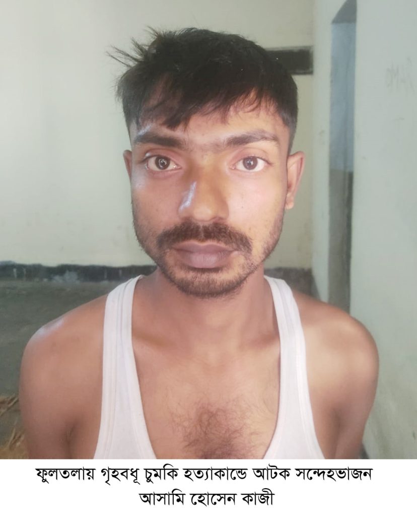 এস. এম মোস্তাফিজুর রহমান, ফুলতলা (খুলনা)।। ফুলতলা উপজেলার দামোদর মোড়ল পাড়ায় প্রেমঘটিত কারণে আছিয়া বেগম চুমকি (৩০) নামে এক গৃহবধূকে হত্যা করা হয়েছে। গতকাল মঙ্গলবার সকাল ১০ টায় নিজ বাড়ি থেকে তার অর্ধগলাকাটা মরদেহ উদ্ধার করে পুলিশ। এ ঘটনায় সন্দেহভাজন খুনি মোঃ হোসেন কাজী (২৯) কে হত্যাকান্ডে ব্যবহৃত ছুরিসহ আটক করেছে পুলিশ। নিহত চুমকি দামোদর গ্রামের শহীদ মোড়লের স্ত্রী। তাদের ১২ বছরের দাম্পত্য জীবনে নুসরাত শারমিন নামের ৭ বছরের একটি কন্যা সন্তান রয়েছে।