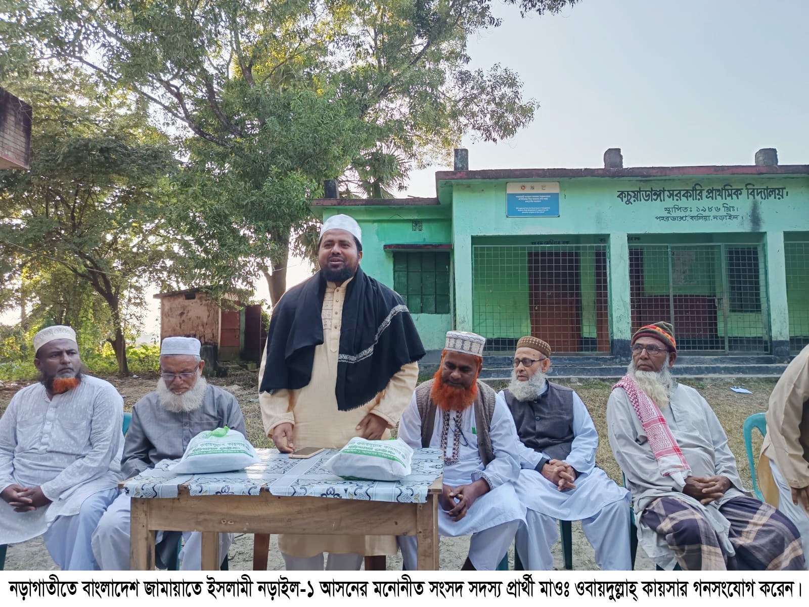 মোঃ মনিরুজ্জামান চৌধুরী, নড়াগাতী (কালিয়া) থেকে।। নড়াইল-০১ আসনে ত্রয়োদশ জাতীয় সংসদ নির্বাচনকে সামনে রেখে আজ দিনভর ব্যাপক নির্বাচনী গণসংযোগ পরিচালনা করেন বাংলাদেশ জামায়াতে ইসলামী মনোনীত সংসদ সদস্যপ্রার্থী জননেতা মাওলানা ওবায়দুল্লাহ কায়সার। বুধবার বিকাল ৩টায় নড়াগাতী থানার পহরডাঙ্গা ইউনিয়নের বিভিন্ন গ্রামে তিনি গণসংযোগের কার্যক্রম শুরু করেন।