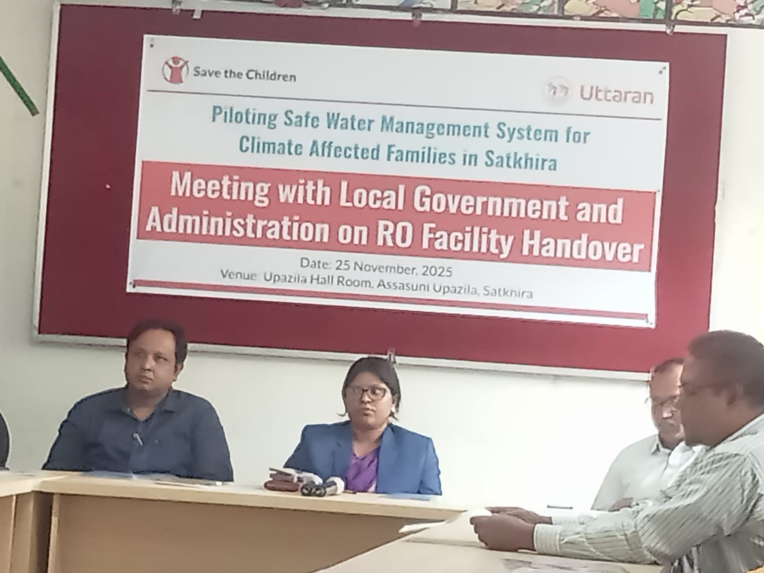 সেফ দ্যা চিল্ড্রেন এর সহায়তায় উত্তরণের বাস্তবায়নে পাইলটিং সেফ ওয়াটার ম্যানেজমেন্ট সিসটেম ফর ক্লাইমেট এ্যাফেক্টেড ফ্যামিলিস ইন সাতক্ষীরা প্রকল্পের আওতায় অনুষ্ঠানে প্রধান অতিথি হিসাবে আলোচনা রাখেন, উপজেলা নির্বাহী অফিসার কৃষ্ণা রায়। প্রকল্পের বিভিন্ন দিক নিয়ে আলোচনা এবং প্রকল্প অবহিতকরণ কার্যক্রম ও পরিকল্পনা সম্পর্কে কথা বলেন, প্রজেক্ট কো-অর্ডিনেটর এম আবু হাসনাত, প্রজেক্ট অফিসার সাইদুজ্জামান রোমেন ও শেখ আবু তাহের, ফিল্ড অর্গানাইজার আব্দুল্লাহেল বাকী, ফারহানা দিবা ও সেফ দ্যা চিলড্রেন প্রতিনিধি আবু বক্কর সিদ্দিক। সরকারি কর্মকর্তাদের মধ্যে উপজেলা সমাজ সেবা অফিসার মোঃ রফিকুল ইসলাম, পিআইও আমিরুল ইসলাম প্রমুখ আলোচনা রাখেন।