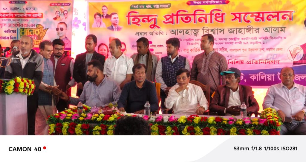 মোঃ মনিরুজ্জামান চৌধুরী, কালিয়া, নড়াইল।। নড়াইল জেলার কালিয়া উপজেলায় উৎসবমুখর পরিবেশে শুক্রবার (২৮ নভেম্বর) অনুষ্ঠিত হয়েছে সনাতন ধর্মাবলম্বীদের হিন্দু প্রতিনিধি সভা। কালিয়া উপজেলা পূজা উদযাপন ফ্রন্টের আয়োজনে অনুষ্ঠিত এ প্রতিনিধি সমাবেশে হিন্দু সম্প্রদায়ের সামাজিক-ধর্মীয় অধিকার, পূজা উদযাপনের সার্বিক প্রস্তুতি, নিরাপত্তা নিশ্চিতকরণ এবং সাম্প্রদায়িক সম্প্রীতির স্থিতিশীলতা নিয়ে বিস্তৃত আলোচনা হয়।