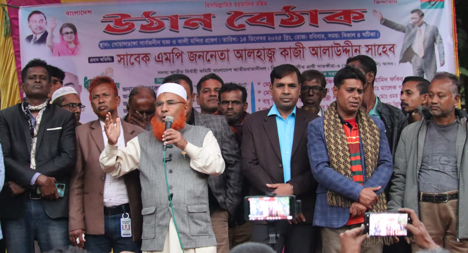 মন্দির কমিটির সভাপতি ব্রজেন্দ্র কুমার মন্ডলের সভাপতিত্বে সভায় প্রধান অতিথি হিসাবে বক্তব্য রাখেন, বিএনপি মনোনীত ধানের শীষের প্রার্থী সাবেক এমপি আলহাজ্ব কাজী আলাউদ্দীন। প্রধান অতিথির বক্তব্যে তিনি বলেন, বিএনপিরর প্রতিষ্ঠাতা শহীদ প্রেসিডেন্ট জিয়াউর রহমান স্বাধীনতা ঘোষক ও বহুদলীয় গনতন্ত্র প্রতিষ্ঠাতা করেন। দেশে গার্মেন্টস, জরশক্তি রপ্তানি ও খাল খনন করে অর্থনৈতিক উন্নয়ন সাধান করেছিলেন। আমি কালিগঞ্জ ও দেবহাটা আসনে বিএনপির এমপি থাকাকালে এলাকার সকল অবকাঠামো, রাস্তাঘাট, স্কুল কলেজ মাদ্রাসা, কালভার্ট, সকল কাচা রাস্তার পাকা করেছিলাম। আমি মুক্তিযুদ্ধ চলাকালে আশাশুনির অলিতে গলিতে যুদ্ধ করেছিলাম, আন্দোলনের সময় অনেক দিন আশাশুনিতে কাটিয়েছি। আমি এমপি নির্বাচিত হলে আশাশুনির কোন রাস্তা কাচা থাকবেনা, মসজিদ মন্দির, স্কুল কলেজ বিদ্যুৎ এর উন্নয়ন করা হবে। বেড়ী বাঁধ বিশ্বের সব চেয়ে টেকসই করা হবে। আশাশুনিতে ইকোনমিক জোন সৃষ্ঠি করবো। মানিকখালী ব্রীজের টোল ফ্রি করবো। এক বছরে সকল রাস্তা পাকা করবো। তাঁত ও কুঠির শিল্প গড়ে তুলবো। স্টেডিয়াম করে সকল ধরনের খেলাধূলার ব্যবস্থা করা হবে। তিনি জামায়াতে ইসলামীর ইতিহাস তুলে ধরে বলেন, বিরোধী শক্তি জামাত, মুক্তিযুদ্ধ বিরোধী, স্বাধীনতাকামী মানুষের উপর নির্মম নির্যাতন করেছেন। তারা সাম্প্রদায়িক নয়। এজন্য তাদের পরিচালিক ব্যাংক, হাসপাতাল, ইন্সুরেন্স, ট্রাস্ট ইত্যাদিতে কোন সনাতনী মানুষকে চাকরী দেয়না।