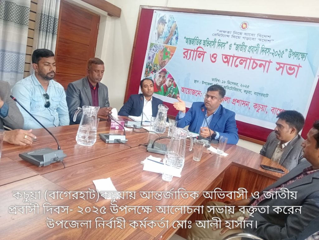 কচুয়া (বাগেরহাট) প্রতিনিধি।।” দক্ষতা নিয়ে যাবো বিদেশ, রেমিট্যান্স দিয়ে গড়বো স্বদেশ ” এই প্রতিপাদ্য বিষয় সামনে রেখে আন্তর্জাতিক অভিবাসী দিবস ও জাতীয় প্রবাসী দিবস ২০২৫ উপলক্ষে রেলি ও আলোচনা সভা অনুষ্ঠিত হয়েছে।