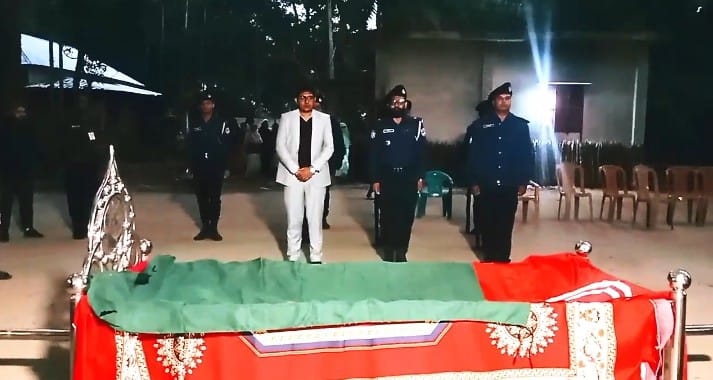 এ সময় পুলিশের একটি চৌকস দল গার্ড অব অনার প্রদান করে। পরে জানাজা শেষে পারিবারিক কবরস্থানে তাঁকে দাফন করা হয়।