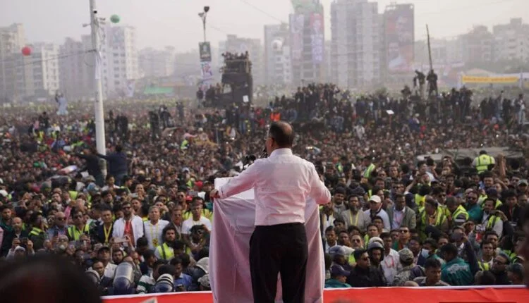 রাঙা প্রভাত ডেস্ক।। যুক্তরাজ্যে দীর্ঘ ১৭ বছরের নির্বাসনের অবসান ঘটিয়ে দেশে ফেরা বিএনপির ভারপ্রাপ্ত চেয়ারম্যান তারেক রহমানকে সংবর্ধনা দিয়েছে তার দল। বৃহস্পতিবার (২৫ ডিসেম্বর) বিকেলে রাজধানীর পূর্বাচলে ‘৩৬ জুলাই এক্সপ্রেসওয়েতে’ আয়োজিত এ সংবর্ধনা অনুষ্ঠানে দেশবাসীদের উদ্দেশে কৃতজ্ঞতা জানাতে দেন একটি সংক্ষিপ্ত বক্তৃতা দেন তিনি, যা ভাষণে রূপ নেয়। গোছানো, স্পষ্ট ও প্রাঞ্জল সেই ভাষণে ওঠে আসে মহান মুক্তিযুদ্ধ থেকে শুরু করে জুলাই গণঅভ্যুত্থানের কথা। উঠে আসে দেশের মানুষের অধিকার, শান্তি-শৃঙ্খলা প্রতিষ্ঠা আর ভাগ্যের উন্নয়নের কথা।