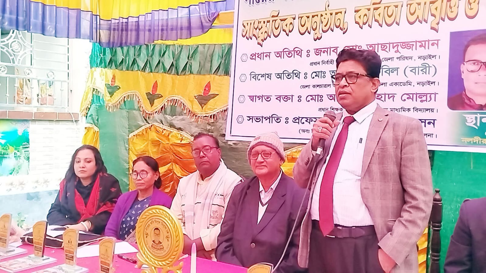 সভাপতিত্ব করেন খুলনার সরকারি ব্রজলাল (বিএল) কলেজের ইংরেজি বিভাগের অবসরপ্রাপ্ত বিভাগীয় প্রধান অধ্যাপক ইকবাল হোসেন এবং সঞ্চালনায় ছিলেন নড়াইল কবিতা আসরের প্রচার সম্পাদক এসকে সরকার। স্বাগত বক্তব্য দেন-আগদিয়া শিমুলিয়া মাধ্যমিক বিদ্যালয়ের প্রধান শিক্ষক আহাদ আলী মোল্যা এবং শুভেচ্ছা বক্তব্য দেন-কবি বিপুল বিশ্বাস।