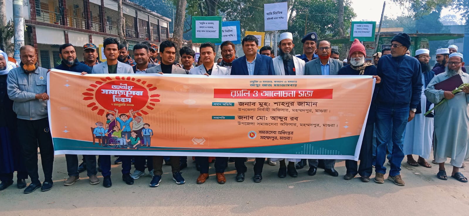 সুব্রত সরকার, মহম্মদপুর (মাগুরা)।। ‘প্রযুক্তি ও মমতায়, কল্যাণ ও সমতায়, আস্থা আজ সমাজসেবায়’— এই প্রতিপাদ্যকে সামনে রেখে বর্ণাঢ্য আয়োজনে শনিবার মাগুরার মহম্মদপুরে জাতীয় সমাজসেবা দিবস ২০২৬ উদযাপিত হয়েছে।