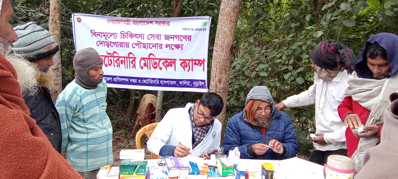 মেডিকেল ক্যাম্পটির সার্বিক তত্ত্বাবধানে ছিলেন ডা. মো. মমিন উদ্দিন, উপজেলা প্রাণী সম্পদ কর্মকর্তা, কালিয়া, নড়াইল।