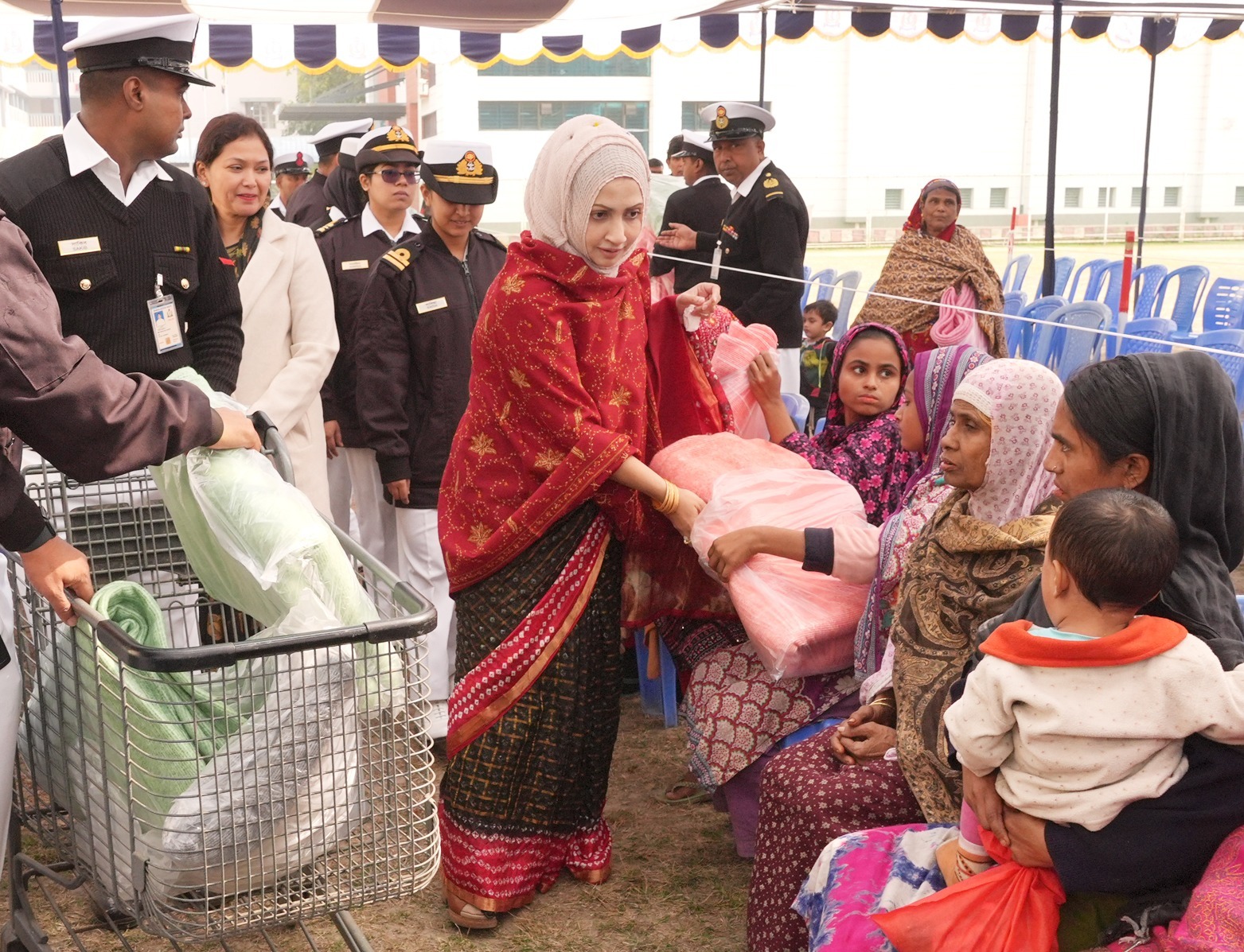 তেরখাদা প্রতিনিধি।। বাংলাদেশ নৌবাহিনী কেবল দেশের সমুদ্রসীমা রক্ষা ও সামুদ্রিক নিরাপত্তা নিশ্চিতকরণেই সীমাবদ্ধ নয়, বরং সমাজের অসহায় ও দুঃস্থ মানুষের কল্যাণে বিভিন্ন মানবিক কার্যক্রমও নিয়মিত পরিচালনা করছে। সামাজিক কার্যক্রম ও মানবিক দায়িত্ব পালনের ধারাবাহিকতায় বাংলাদেশ নৌবাহিনী পরিবার কল্যাণ সংঘ (বিএনএফডব্লিউএ) ঢাকা’র উদ্যোগে আজ সোমবার (০৫-০১-২০২৬) গরীব, দুঃস্থ ও শীতার্ত মানুষের মাঝে শীতবস্ত্র বিতরণ করা হয়। ঢাকার মিরপুর-১৪ তে অবস্থিত নাবিক আবাসিক এলাকায় আয়োজিত এ মানবিক কর্মসূচিতে প্রধান অতিথি হিসেবে উপস্থিত থেকে শীতবস্ত্র বিতরণ করেন বাংলাদেশ নৌবাহিনী পরিবার কল্যাণ সংঘের প্রেসিডেন্ট নাদিয়া সুলতানা। এ সময় অন্যান্যদের মাঝে চেয়ারম্যান বিএন লেডিস ক্লাব ঢাকা, চেয়ারম্যান বিএনএফডব্লিউএ ঢাকা, বিএনএফডব্লিউএ কেন্দ্রীয় কমিটির ভাইস প্রেসিডেন্টবৃন্দ, কমান্ডার ঢাকা নৌ অঞ্চল এবং বিএনএফডব্লিউএ ঢাকা শাখার কার্যনির্বাহী কমিটির সদস্যবৃন্দ উপস্থিত ছিলেন।