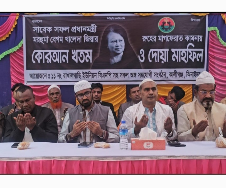 ঝিনাইদহ প্রতিনিধি।। ঝিনাইদহের কালীগঞ্জ উপজেলার রাখালগাছী ও বারোবাজার ইউনিয়নে পৃথকভাবে সাবেক প্রধানমন্ত্রী বেগম খালেদা জিয়ার রুহের মাগফিরাত কামনায় কোরআন খতম, দোয়া মাহফিল ও আলোচনা সভা অনুষ্ঠিত হয়েছে।