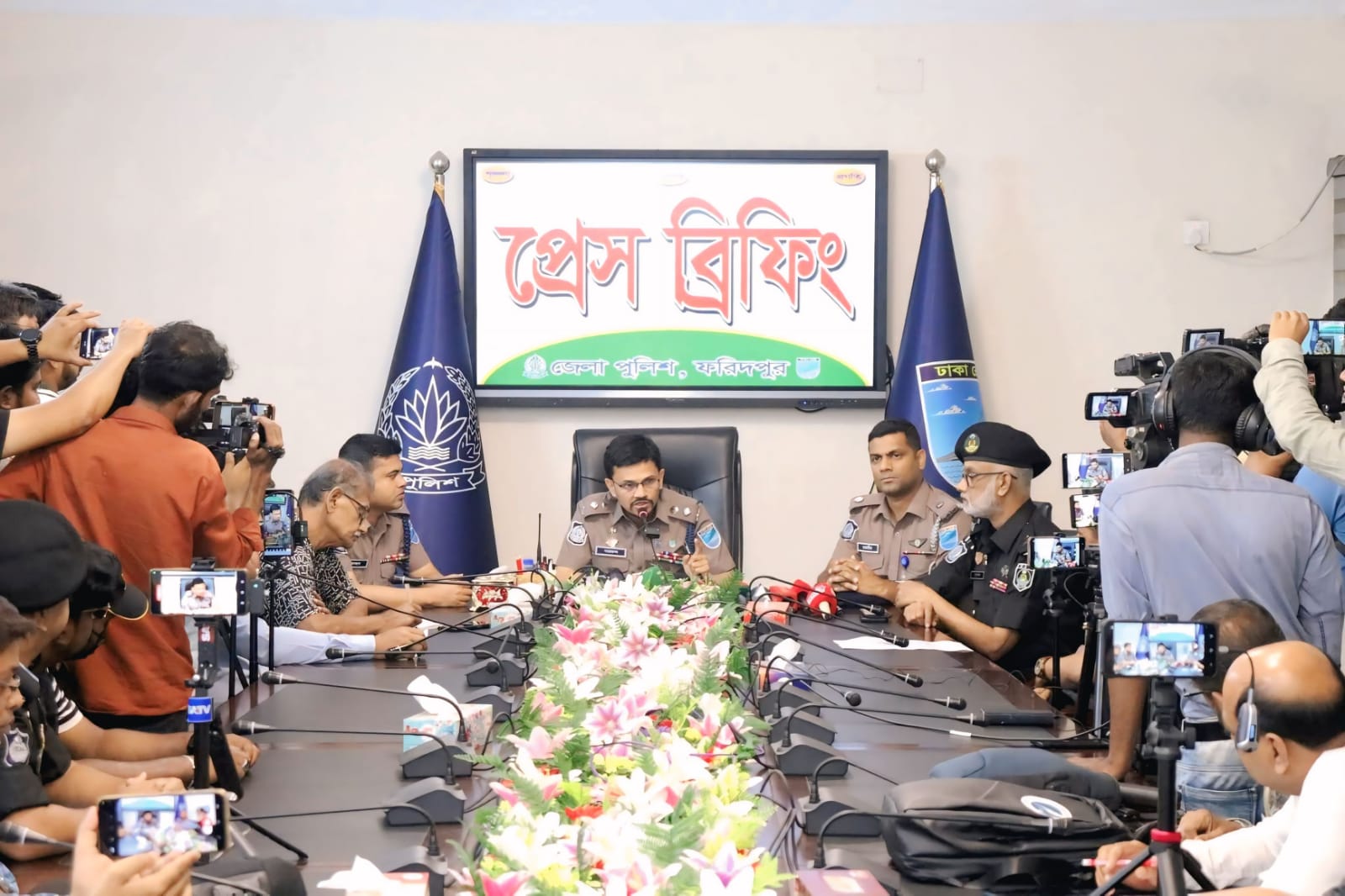 ফরিদপুর জেলা পুলিশ জানান, দ্রুত পদক্ষেপের ফলে অল্প সময়ের মধ্যেই প্রধান আসামিকে গ্রেফতার ও আলামত উদ্ধার সম্ভব হয়েছে। আহতদের চিকিৎসা নিশ্চিত করা হয়েছে এবং ঘটনার প্রকৃত কারণ উদঘাটনে তদন্ত কার্যক্রম চলমান রয়েছে। প্রেস ব্রিফিংয়ে অতিরিক্ত পুলিশ সুপার আজমির হোসেন, অতিরিক্ত পুলিশ সুপার শামসুল আজমসহ জেলার বিভিন্ন প্রিন্ট ও ইলেকট্রনিক মিডিয়ার সাংবাদিকরা উপস্থিত ছিলেন।
